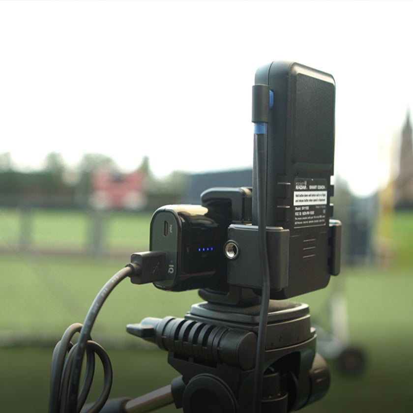 A quick guide to setting up the Smart Coach Radar with the Deluxe Tripod, Universal Mount and Right-Angle USB Cable Accessories (USB Power Pack examples).